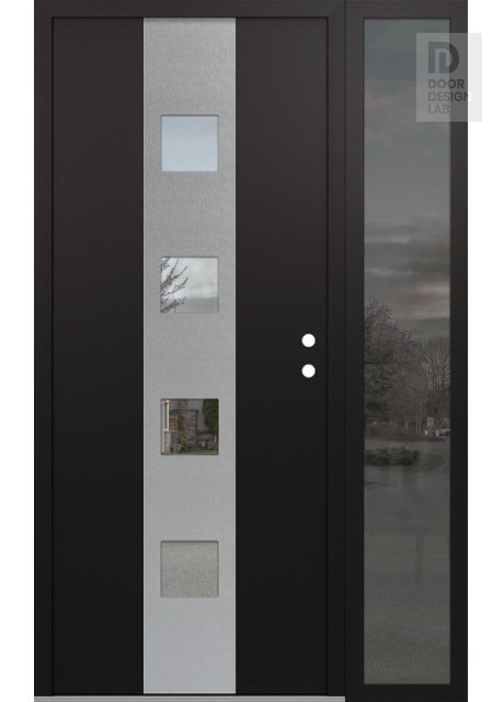 Modern Steel Front Door DIAMOND A12 48" X 80" BLACK/BLACK CLEAR GLASS PANEL STAINLESS STEEL RHI WITH SIDELITE MIRRORED GLASS