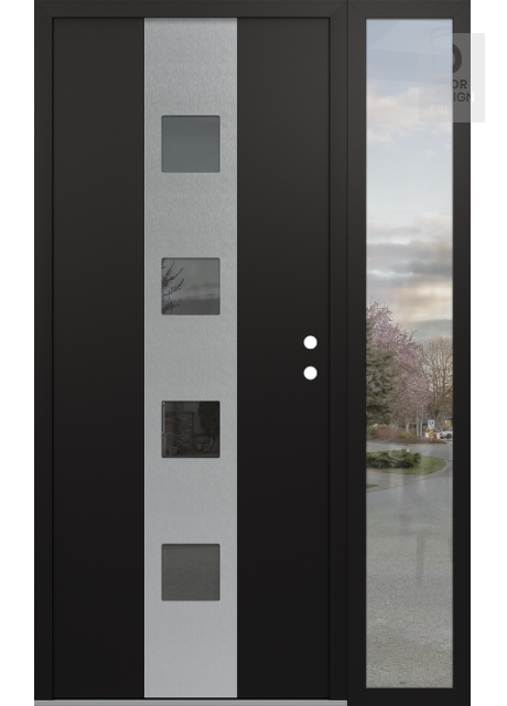 Modern Steel Front Door DIAMOND A12 48" X 80" BLACK/BLACK MIRRORED GLASS PANEL STAINLESS STEEL RHI WITH SIDELITE CLEAR GLASS