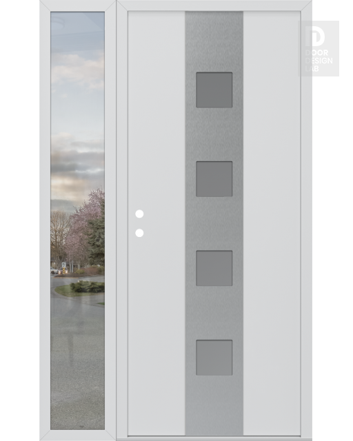 Modern Steel Front Door DIAMOND A12 48" X 80" BLACK/WHITE FROSTED GLASS PANEL STAINLESS STEEL LHI WITH SIDELITE CLEAR GLASS