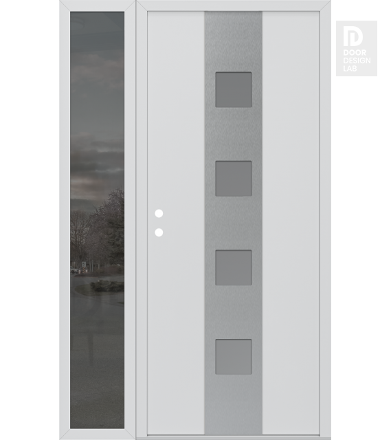Modern Steel Front Door DIAMOND A12 48" X 80" BLACK/WHITE FROSTED GLASS PANEL STAINLESS STEEL LHI WITH SIDELITE MIRRORED GLASS