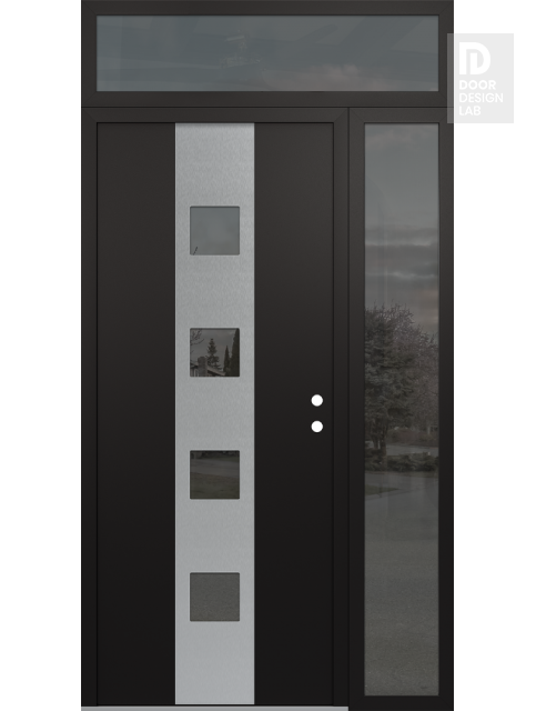 Modern Steel Front Door DIAMOND A12 48" X 96" BLACK/BLACK MIRRORED GLASS PANEL STAINLESS STEEL RHI WITH SIDELITE AND TRANSOM MIRRORED GLASS