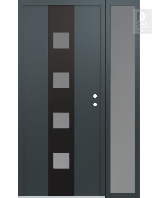 Modern Steel Front Door DIAMOND A12 50" X 80" ANTHRACITE/ANTHRACITE FROSTED GLASS PANEL BLACK RHI WITH SIDELITE FROSTED GLASS