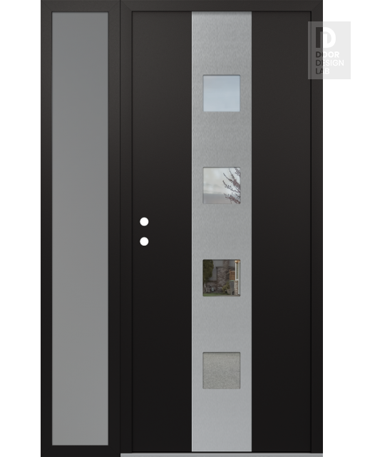 Modern Steel Front Door DIAMOND A12 50" X 80" BLACK/BLACK CLEAR GLASS PANEL STAINLESS STEEL LHI WITH SIDELITE FROSTED GLASS