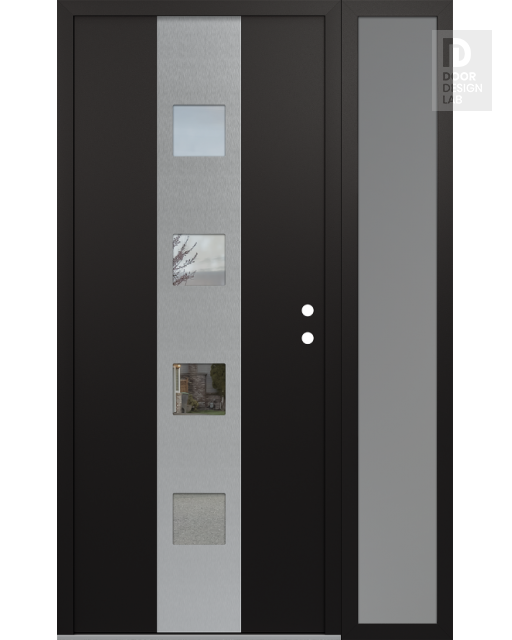 Modern Steel Front Door DIAMOND A12 50" X 80" BLACK/BLACK CLEAR GLASS PANEL STAINLESS STEEL RHI WITH SIDELITE FROSTED GLASS