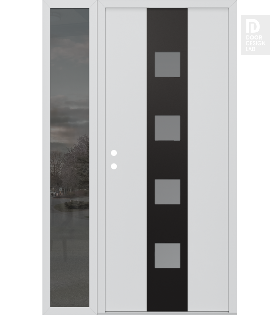 Modern Steel Front Door DIAMOND A12 50" X 80" BLACK/WHITE FROSTED GLASS PANEL BLACK LHI WITH SIDELITE MIRRORED GLASS