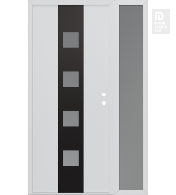 Modern Steel Front Door DIAMOND A12 50" X 80" BLACK/WHITE FROSTED GLASS PANEL BLACK RHI WITH SIDELITE FROSTED GLASS