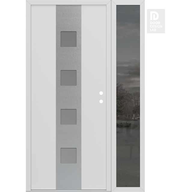 Modern Steel Front Door DIAMOND A12 50" X 80" BLACK/WHITE FROSTED GLASS PANEL STAINLESS STEEL RHI WITH SIDELITE MIRRORED GLASS