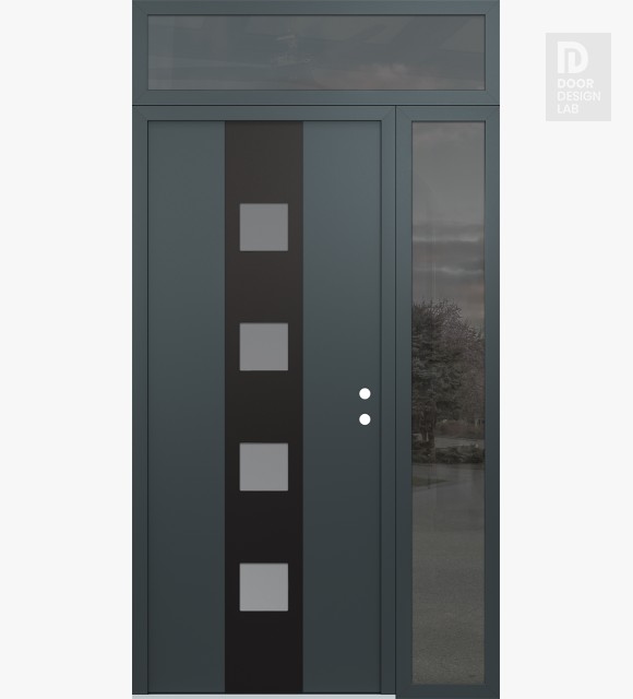 Modern Steel Front Door DIAMOND A12 50" X 96" ANTHRACITE/ANTHRACITE FROSTED GLASS PANEL BLACK RHI WITH SIDELITE AND TRANSOM MIRRORED GLASS