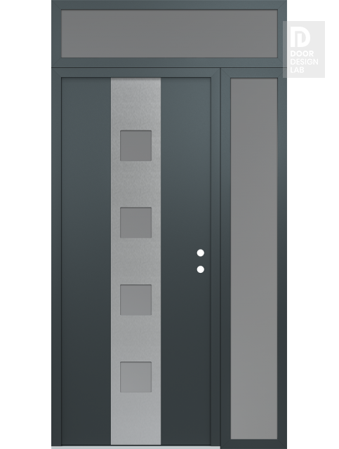 Modern Steel Front Door DIAMOND A12 50" X 96" ANTHRACITE/ANTHRACITE FROSTED GLASS PANEL STAINLESS STEEL RHI WITH SIDELITE AND TRANSOM FROSTED GLASS