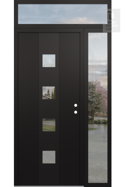 Modern Steel Front Door DIAMOND A12 50" X 96" BLACK/BLACK CLEAR GLASS PANEL BLACK RHI WITH SIDELITE AND TRANSOM CLEAR GLASS
