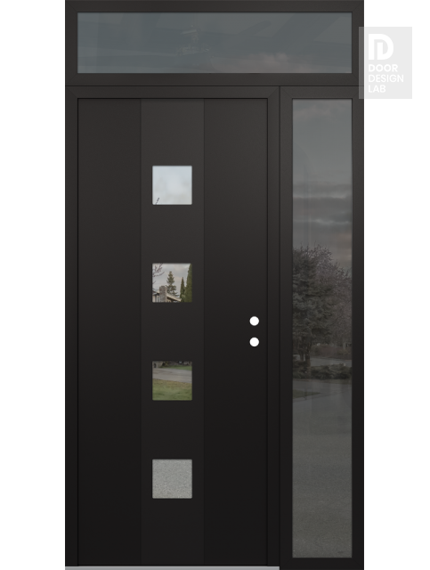 Modern Steel Front Door DIAMOND A12 50" X 96" BLACK/BLACK CLEAR GLASS PANEL BLACK RHI WITH SIDELITE AND TRANSOM MIRRORED GLASS