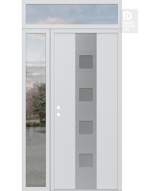 Modern Steel Front Door DIAMOND A12 50" X 96" BLACK/WHITE FROSTED GLASS PANEL STAINLESS STEEL LHI WITH SIDELITE AND TRANSOM CLEAR GLASS
