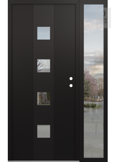 Modern Steel Front Door DIAMOND A12 52" X 80" BLACK/BLACK CLEAR GLASS PANEL BLACK RHI WITH SIDELITE CLEAR GLASS