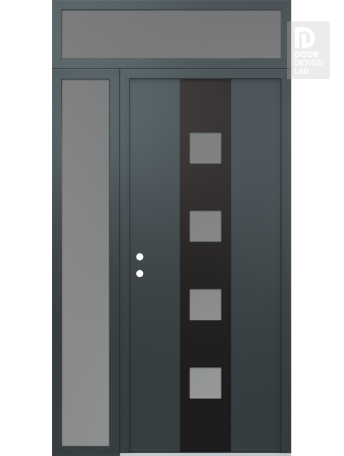 Modern Steel Front Door DIAMOND A12 52" X 96" ANTHRACITE/ANTHRACITE FROSTED GLASS PANEL BLACK LHI WITH SIDELITE AND TRANSOM FROSTED GLASS
