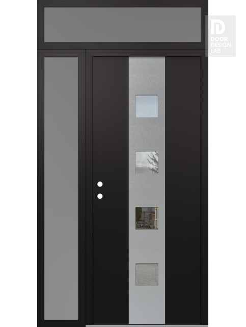 Modern Steel Front Door DIAMOND A12 52" X 96" BLACK/BLACK CLEAR GLASS PANEL STAINLESS STEEL LHI WITH SIDELITE AND TRANSOM FROSTED GLASS