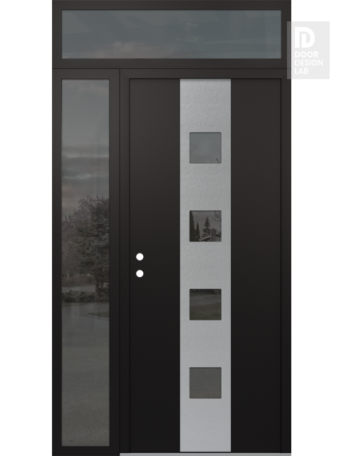 Modern Steel Front Door DIAMOND A12 52" X 96" BLACK/BLACK MIRRORED GLASS PANEL STAINLESS STEEL LHI WITH SIDELITE AND TRANSOM MIRRORED GLASS