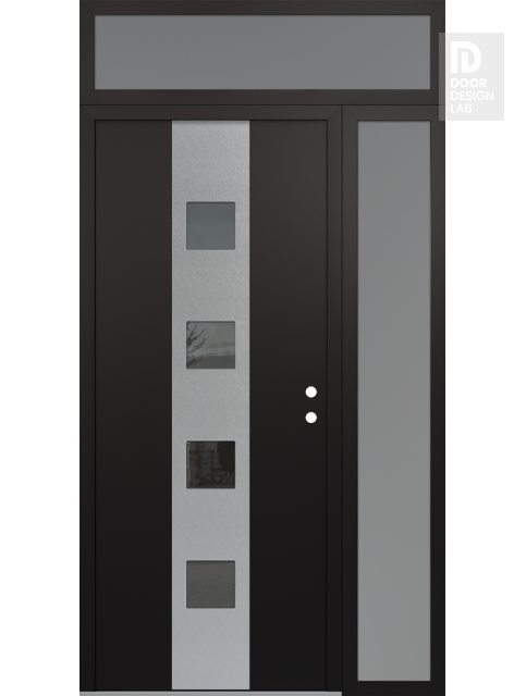 Modern Steel Front Door DIAMOND A12 52" X 96" BLACK/BLACK MIRRORED GLASS PANEL STAINLESS STEEL RHI WITH SIDELITE AND TRANSOM FROSTED GLASS