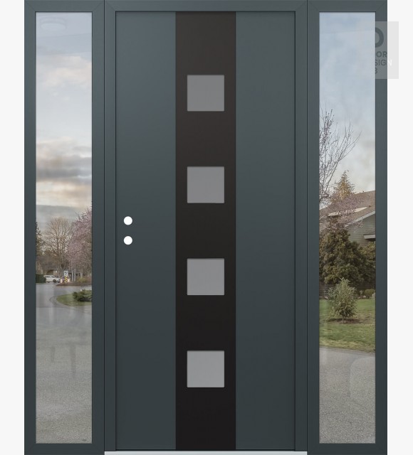 Modern Steel Front Door DIAMOND A12 60" X 80" ANTHRACITE/ANTHRACITE FROSTED GLASS PANEL BLACK LHI WITH 2 SIDELITES CLEAR GLASS