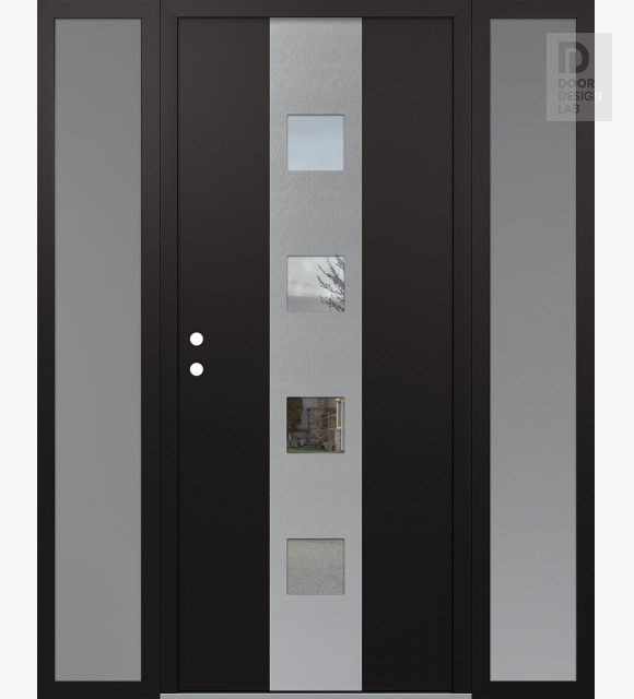 Modern Steel Front Door DIAMOND A12 60" X 80" BLACK/BLACK CLEAR GLASS PANEL STAINLESS STEEL LHI WITH 2 SIDELITES FROSTED GLASS