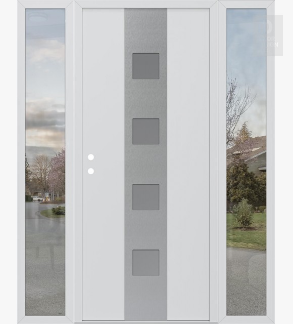 Modern Steel Front Door DIAMOND A12 60" X 80" BLACK/WHITE FROSTED GLASS PANEL STAINLESS STEEL LHI WITH 2 SIDELITES CLEAR GLASS
