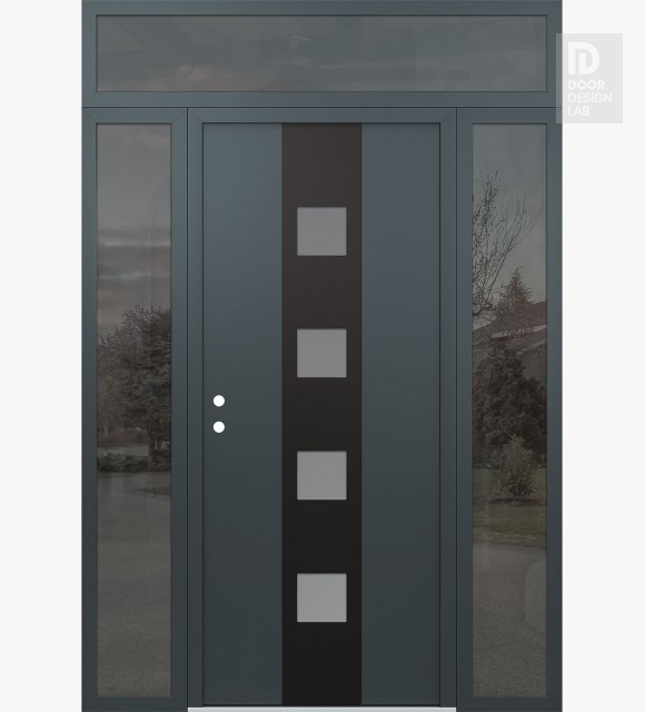 Modern Steel Front Door DIAMOND A12 60" X 96" ANTHRACITE/ANTHRACITE FROSTED GLASS PANEL BLACK LHI WITH 2 SIDELITES AND TRANSOM MIRRORED GLASS