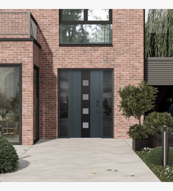 Modern Steel Front Door DIAMOND A12 64" X 80" ANTHRACITE/ANTHRACITE FROSTED GLASS PANEL BLACK LHI WITH 2 SIDELITES MIRRORED GLASS