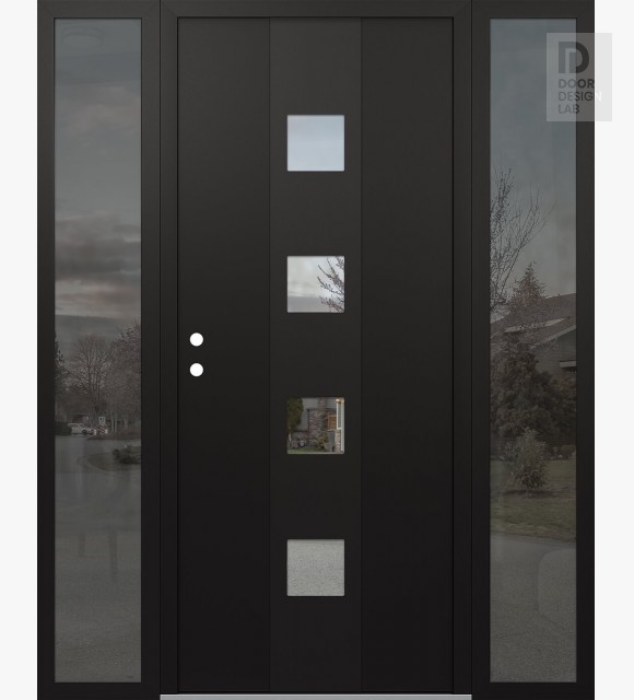 Modern Steel Front Door DIAMOND A12 64" X 80" BLACK/BLACK CLEAR GLASS PANEL BLACK LHI WITH 2 SIDELITES MIRRORED GLASS