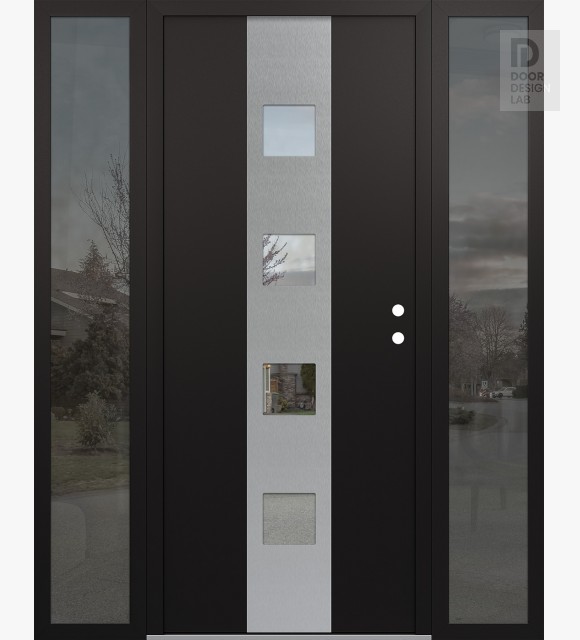 Modern Steel Front Door DIAMOND A12 64" X 80" BLACK/BLACK CLEAR GLASS PANEL STAINLESS STEEL RHI WITH 2 SIDELITES MIRRORED GLASS