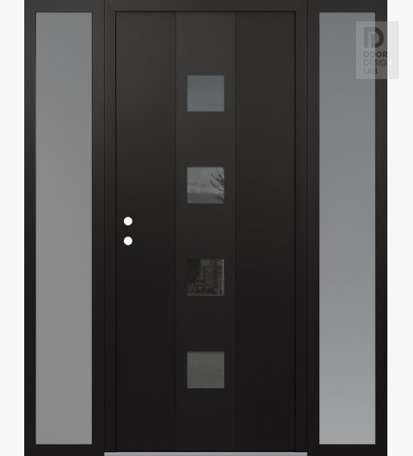 Modern Steel Front Door DIAMOND A12 64" X 80" BLACK/BLACK MIRRORED GLASS PANEL BLACK LHI WITH 2 SIDELITES FROSTED GLASS