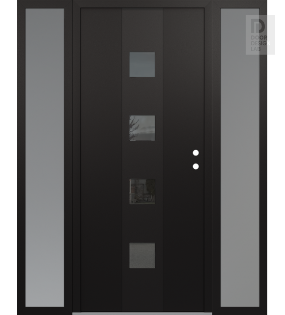 Modern Steel Front Door DIAMOND A12 64" X 80" BLACK/BLACK MIRRORED GLASS PANEL BLACK RHI WITH 2 SIDELITES FROSTED GLASS