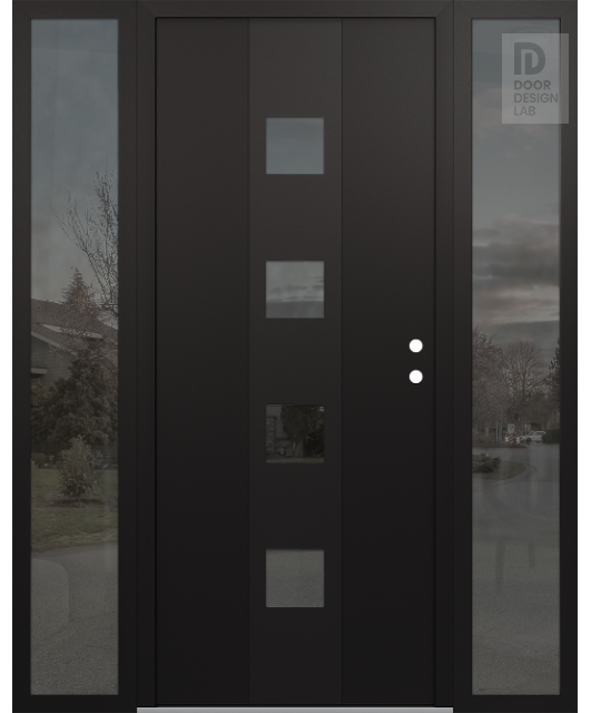 Modern Steel Front Door DIAMOND A12 64" X 80" BLACK/BLACK MIRRORED GLASS PANEL BLACK RHI WITH 2 SIDELITES MIRRORED GLASS