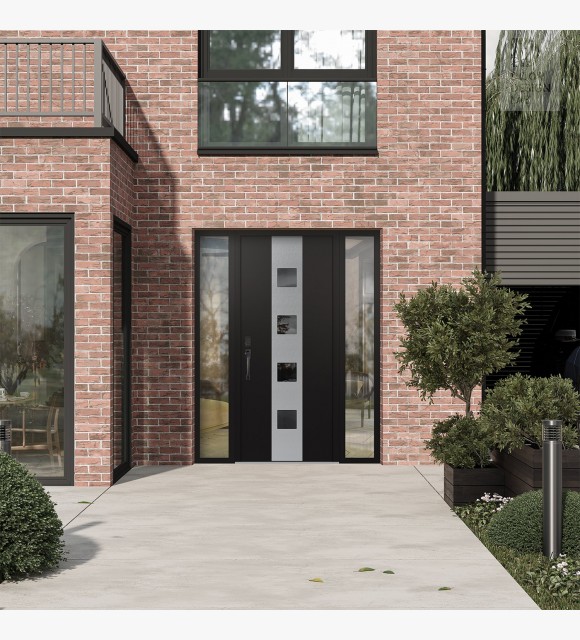 The double-chamber glazing combined with polystyrene insulation reduces heat loss by 40-50% compared to conventional exterior doors: