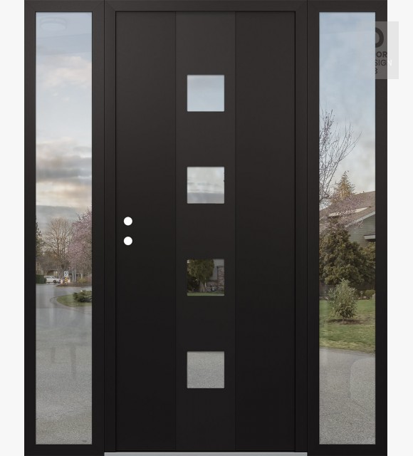 Modern Steel Front Door DIAMOND A12 68" X 80" BLACK/BLACK CLEAR GLASS PANEL BLACK LHI WITH 2 SIDELITES CLEAR GLASS