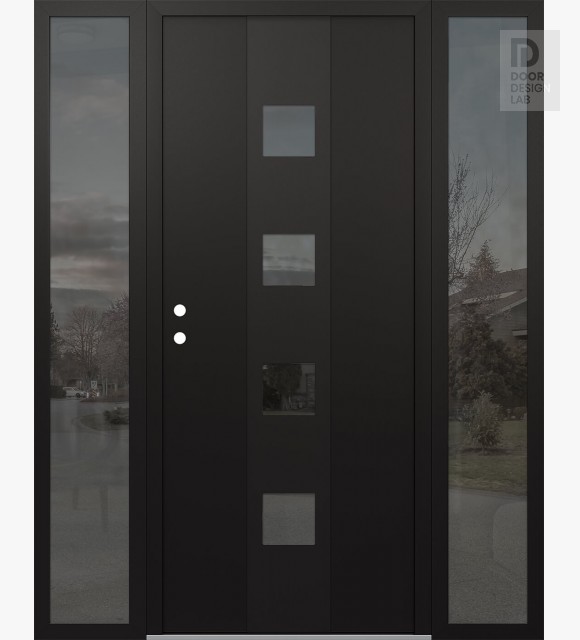 Modern Steel Front Door DIAMOND A12 68" X 80" BLACK/BLACK MIRRORED GLASS PANEL BLACK LHI WITH 2 SIDELITES MIRRORED GLASS