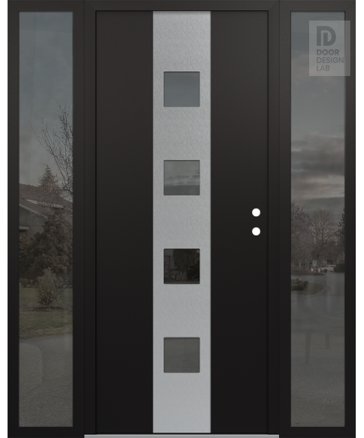 Modern Steel Front Door DIAMOND A12 68" X 80" BLACK/BLACK MIRRORED GLASS PANEL STAINLESS STEEL RHI WITH 2 SIDELITES MIRRORED GLASS