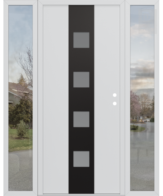 Modern Steel Front Door DIAMOND A12 68" X 80" BLACK/WHITE FROSTED GLASS PANEL BLACK RHI WITH 2 SIDELITES CLEAR GLASS