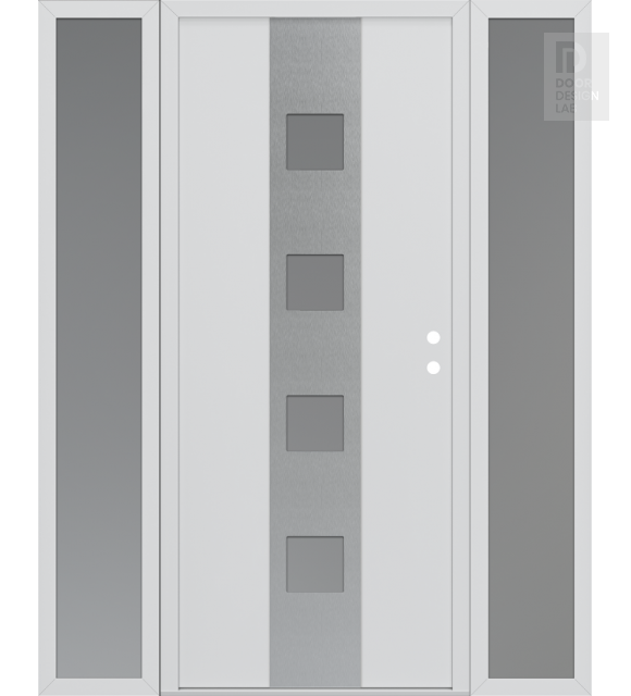 Modern Steel Front Door DIAMOND A12 68" X 80" BLACK/WHITE FROSTED GLASS PANEL STAINLESS STEEL RHI WITH 2 SIDELITES FROSTED GLASS