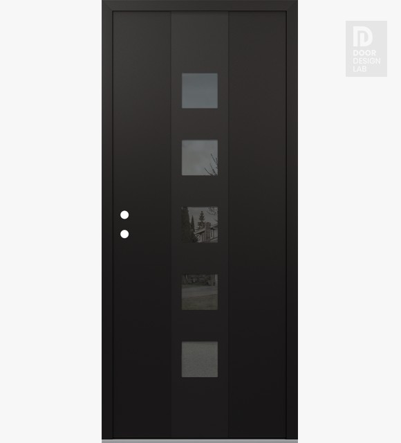 Modern Steel Front Door DIAMOND A13 36" X 80" BLACK/BLACK MIRRORED GLASS PANEL BLACK LHI