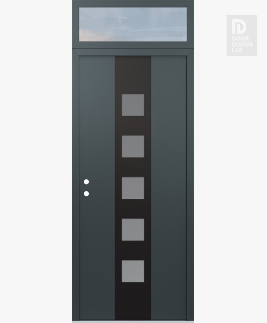 Modern Steel Front Door DIAMOND A13 36" X 96" ANTHRACITE/ANTHRACITE FROSTED GLASS PANEL BLACK LHI WITH TRANSOM CLEAR GLASS