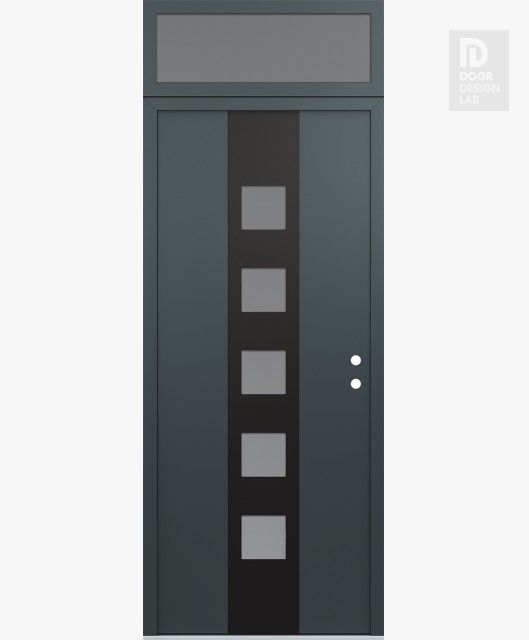 Modern Steel Front Door DIAMOND A13 36" X 96" ANTHRACITE/ANTHRACITE FROSTED GLASS PANEL BLACK RHI WITH TRANSOM FROSTED GLASS