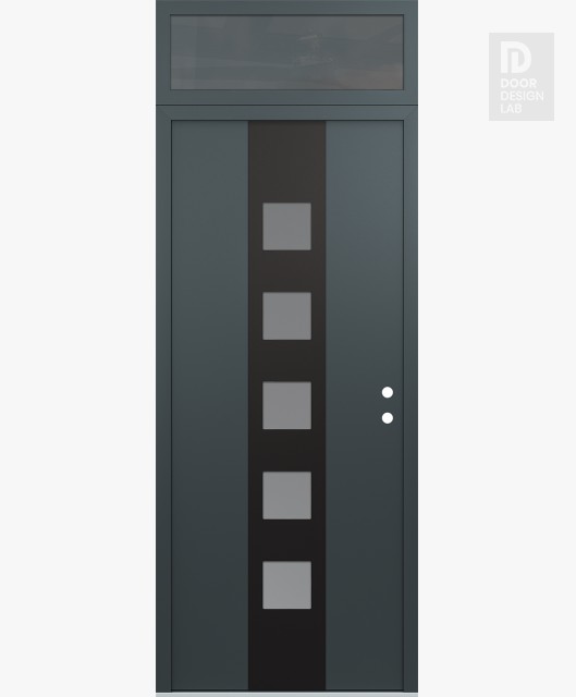 Modern Steel Front Door DIAMOND A13 36" X 96" ANTHRACITE/ANTHRACITE FROSTED GLASS PANEL BLACK RHI WITH TRANSOM MIRRORED GLASS