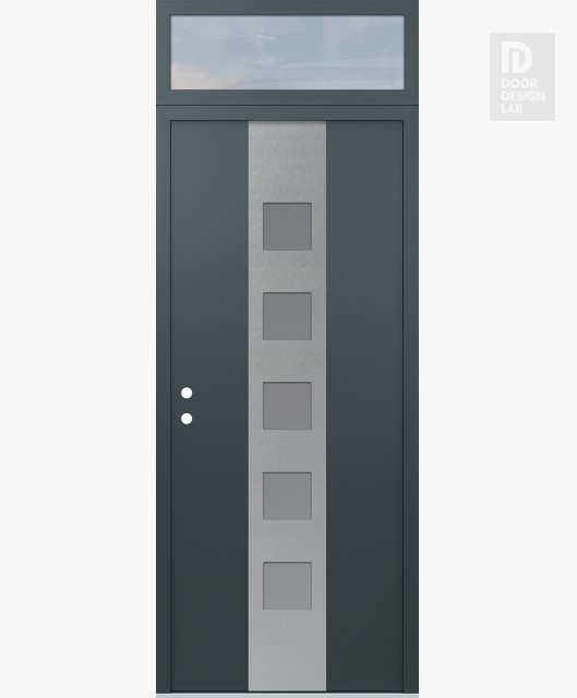 Modern Steel Front Door DIAMOND A13 36" X 96" ANTHRACITE/ANTHRACITE FROSTED GLASS PANEL STAINLESS STEEL LHI WITH TRANSOM CLEAR GLASS
