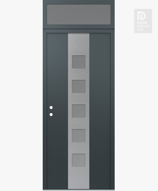 Modern Steel Front Door DIAMOND A13 36" X 96" ANTHRACITE/ANTHRACITE FROSTED GLASS PANEL STAINLESS STEEL LHI WITH TRANSOM FROSTED GLASS