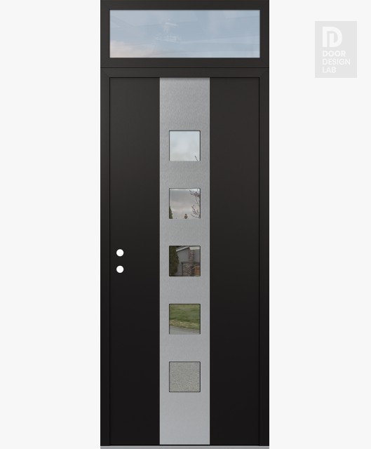 Modern Steel Front Door DIAMOND A13 36" X 96" BLACK/BLACK CLEAR GLASS PANEL STAINLESS STEEL LHI WITH TRANSOM CLEAR GLASS