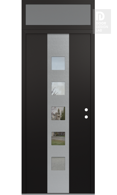 Modern Steel Front Door DIAMOND A13 36" X 96" BLACK/BLACK CLEAR GLASS PANEL STAINLESS STEEL RHI WITH TRANSOM FROSTED GLASS
