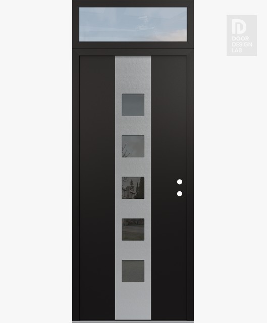 Modern Steel Front Door DIAMOND A13 36" X 96" BLACK/BLACK MIRRORED GLASS PANEL STAINLESS STEEL RHI WITH TRANSOM CLEAR GLASS