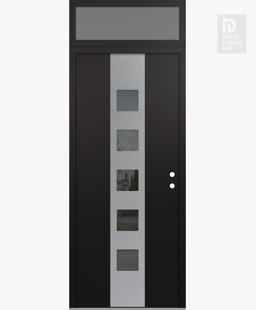 Modern Steel Front Door DIAMOND A13 36" X 96" BLACK/BLACK MIRRORED GLASS PANEL STAINLESS STEEL RHI WITH TRANSOM FROSTED GLASS