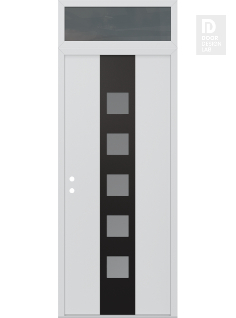 Modern Steel Front Door DIAMOND A13 36" X 96" BLACK/WHITE FROSTED GLASS PANEL BLACK LHI WITH TRANSOM MIRRORED GLASS