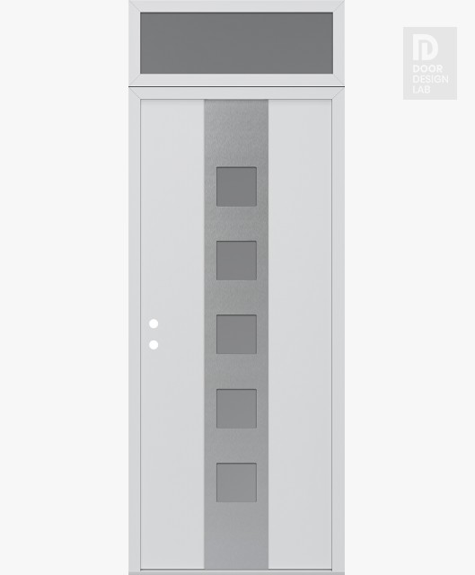 Modern Steel Front Door DIAMOND A13 36" X 96" BLACK/WHITE FROSTED GLASS PANEL STAINLESS STEEL LHI WITH TRANSOM FROSTED GLASS