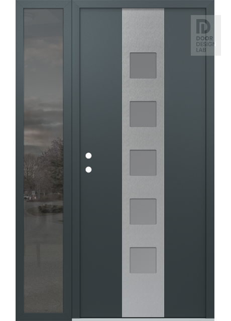 Modern Steel Front Door DIAMOND A13 48" X 80" ANTHRACITE/ANTHRACITE FROSTED GLASS PANEL STAINLESS STEEL LHI WITH SIDELITE MIRRORED GLASS